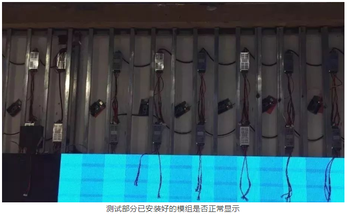 控制卡上面有一个测试按键,刚通电,可以先利用这个方式来测试,如果安装正常的话屏会依次显示红、绿、蓝、行、场、点信息,然后再将控制电脑测试一遍,主要是为测试网线是否通讯正常。正常的话再安装下一组,直到安装完成。