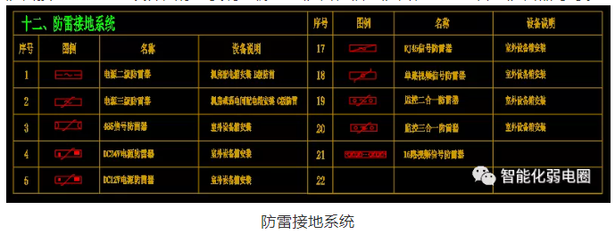 防雷接地系统弱电设计图标主要有电源二级防雷,信号防雷,监控二合一防雷器等等。