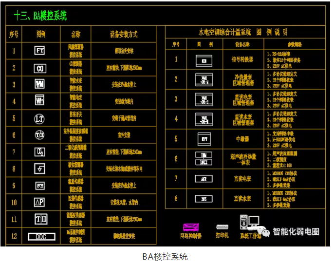BA楼空系统弱电设计图标主要有风雨探测器楼控系统,智能水表楼控系统,智能电表楼控系统等等。